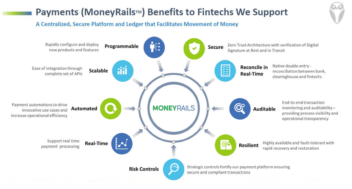 FinWise is in the process of launching its MoneyRails solution, a modern payments hub system. The Bank’s MoneyRails solution will allow fintechs and other businesses with high volume payment processing needs to safeguard deposits and process large numbers of payments via API. One of the many use cases supported by MoneyRails includes FBO accounts for neobanks or other fintechs holding deposits for end users.